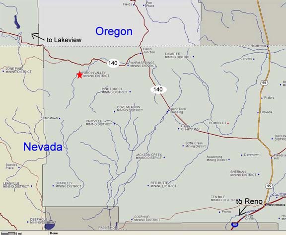 approximately 25 miles from Denio Junction on Hwy 140 to the graded